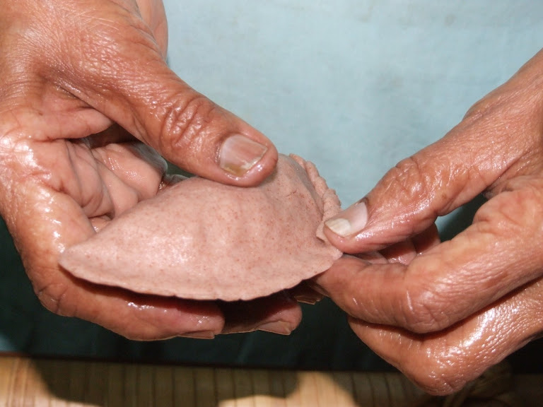 Filling is made of boiled Green Gram, scrapped coconut and powdered sugar cane candy